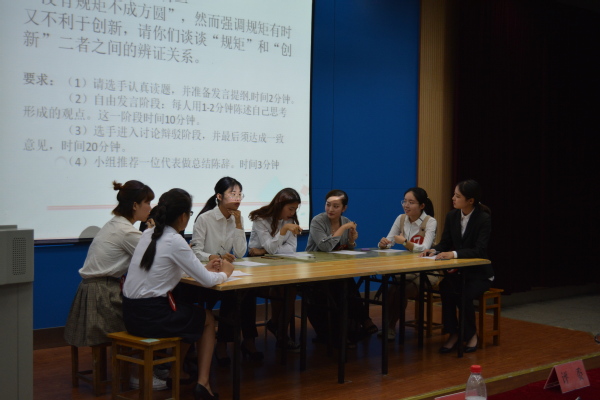 比赛共分为两个环节。第一环节为PPT展示。比赛伊始,选手们依次登台演讲,阐述各自的梦想蓝图,她们的各项规划都为自己未来的道路拓展了更多的可能性。张诗敏、张天欣两位同学从当今社会需要以及自身性格特点阐述了自己对未来的规划。曹锟、汤云芹、颜慧敏三位同学根据兴趣爱好以及霍兰德职业测试表达了自己对未来职业生涯的信心。王耀旭、王若筱、范彬彬三位同学在演讲中充满着对未来职业生涯的自信,她们利用清晰的逻辑思路、形象得体的语言,立足于本身所学的专业将自己未来的职业生涯规划的井井有条。第二环节为无领导小组讨论。选手们面对难题毫不退让,从小心翼翼的试探迅速进入激烈的争辩过程。有的选手牢牢抓住破题的关键基点,循序渐进,语言理性而不失却幽默;有的选手分析视野开阔,超越问题设置的局限性而根植于社会发展的宏观格局深入剖析;有的选手具有深厚的专业知识储备,通过朴实的事例证明将深奥晦涩的辩题有效转化。整个讨论过程激烈而不失章法。管理学院王介石老师为本场比赛做出精彩点评。他从职业规划设计的背景、实现目标、选择路径、论证方法及演示技巧等方面进行深入阐释,并针对比赛中存在的不足之处提出专业的改进意见。最终,经过评委团的认真评定,来自生化学院的王耀旭同学斩获特等奖,外国语学院获得最佳组织奖。