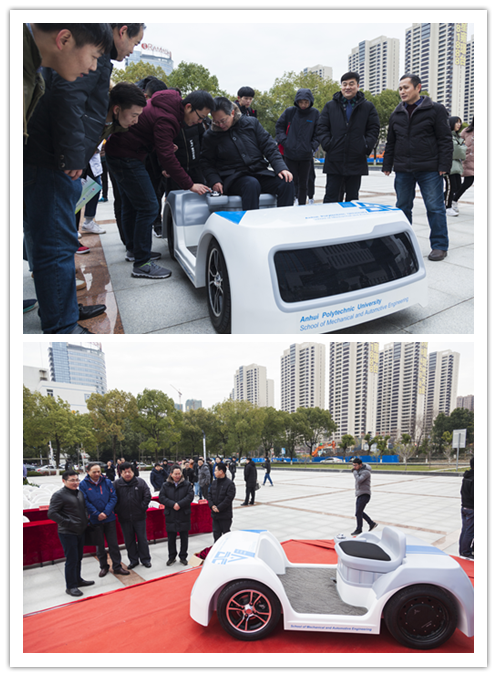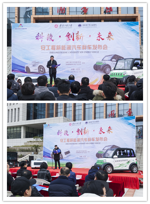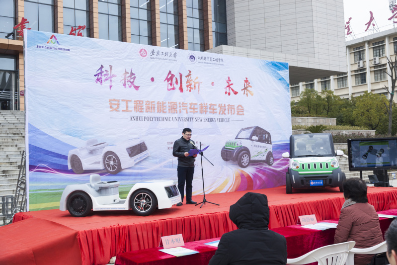 芜湖市科技局、弋江区发改委、国家汽车零部件产品质量监督检验中心(芜湖)、奇瑞汽车股份有限公司、奇瑞新能源汽车技术有限公司、奇瑞商用车(安徽)有限公司、芜湖思创实业集团、安徽悦泉新能源科技有限公司、安徽机电职业技术学院等政、产、学界领导和嘉宾应邀出席发布会。副校长郭兴众以及科技处、宣传部、国资处、国际处、机械学院领导、车辆工程系全体教师、车辆专业研究生和本科生代表出席了新车发布会,发布会由车辆工程系主任王建平研究员主持。