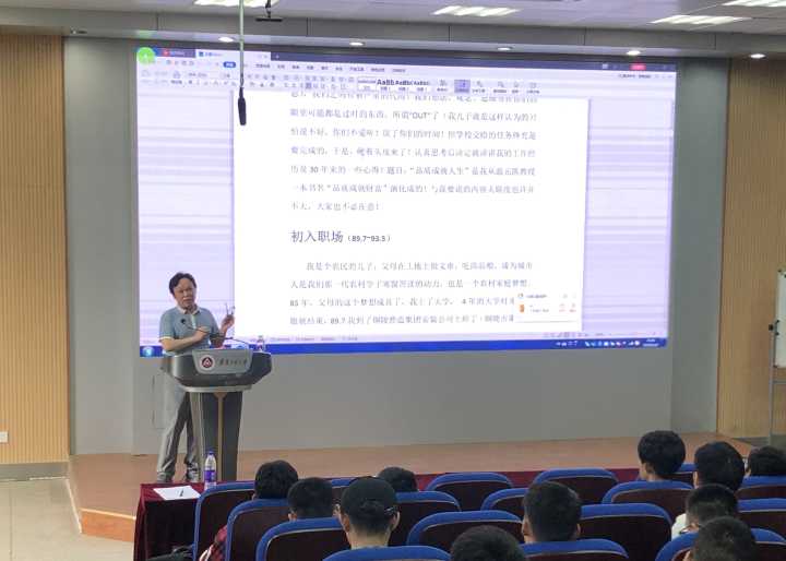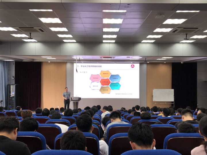 汪久高给各位同学介绍了奇瑞公司的概况,让同学们从发展历程、成果荣誉和黑料正能量等方面对奇瑞公司有了一定的了解。随后他以职业化工程师的责任为切入点,详细解说了作为一名优秀的工程师,在工作中切实做到“为公司创造利润、为用户保障品质、为公司培养人才、为行业升级技术”的实际意义。对于职业化工程师应当具备的知识能力、沟通协调能力、学习总结能力、目标实现能力也进行了详细的介绍。同时,他建议各位同学在未来的职业生涯中,对待工作要尽职尽责,多注意细节的处理,敏言讷行。