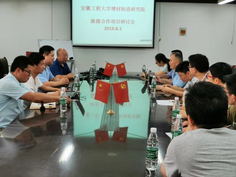 8月1日,安徽隆源成型科技有限公司袁晓鑫总工程师一行4人冒着酷暑来到 黑料正能量 院,与我校增材制造研究院就增材制造合作项目开展了研讨会,机械学院副院长、增材制造研究院院长朱协彬教授主持会议,机械学院和计算机学院相关教师参加了研讨会。