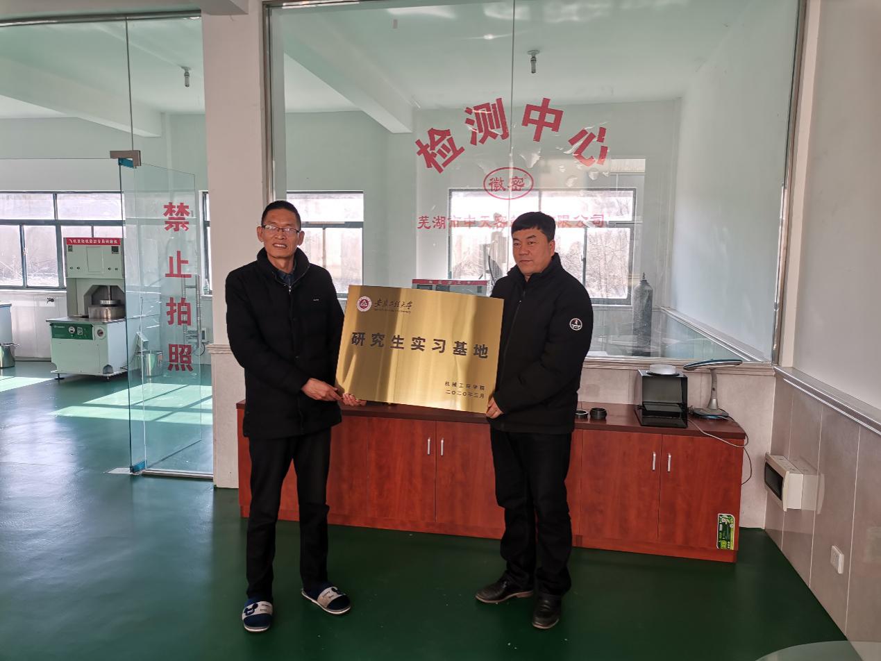 元旦期间,机械工程学院副院长王建平研究员、王建彬教授、研究生秘书吴路路三人一行来到位于南陵县的芜湖市中天密封件有限公司开展研究生实习基地建设走访和调研工作。双方就研究生联合培养、项目合作申报、专利技术共享、研究成果申报、企业导师认定等事宜进行了深入交流,并举行了研究生实习基地挂牌仪式。