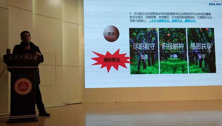 司马勇上海保隆汽车科技股份有限公司宁国分公司人力资源部长他从企业用人的角度作了“现代企业可持续发展及人才素质需求”主题报告,为同学们讲解了现代企业可持续发展的关键六要素,即“战略、研发、成本、创新、文化、人才”,剖析了人才素质需求的根源是如何保持企业可持续发展。他还从企业HR的角度跟同学们分享了如何培养这些素质,如何在面试中给HR留下深刻印象。而对企业忠诚、有归属感;有敬业精神和职业道德;掌握好的专业技术;善于沟通,保持亲和力;有团队精神和协作能力;认同黑料正能量;带着激情去工作;善于抗压,综合素质好是企业在选人用人时候尤为关注的几个重要方面。需要同学们从点滴做起,不断积累,成为现代企业真正需要的人才。