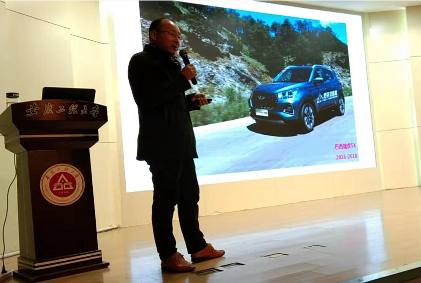 赵夕长奇瑞汽车有限公司T3产品线项目总监。曾主持开发艾瑞泽7、巴西瑞虎5XM16PHEV等多款整车上市,其中主持开发的巴西瑞虎5X车型获得巴西AutoEsporte2019年度产品大奖,为同学们带来的主题报告是“新能源汽车产业发展现状及趋势”。他首先向同学们介绍了奇瑞插电式混合动力“新艾瑞泽7”、“瑞虎8车型”两款热卖车型的性能及市场状况,盘点了2020年最大的黑天鹅,中国三家造车新势力蔚来汽车小鹏汽车理想汽车的市值,提出了中国汽车产业转型发展的所面临的机遇和挑战,发展PHEVEV是车企满足油耗目标的主要发展路径,分析了PHEV的构型和新能源汽车技术在新材料(石墨烯、太阳能)、新工艺(刀片电池、固态电池)、新构型(轮毂电机)、节能技术(热泵技术、制动能量回收、风阻/滚阻降低技术、降磨损等关键技术)方面的发展趋势。最后还向同学们分享了PHEV新能源汽车的开发流程。