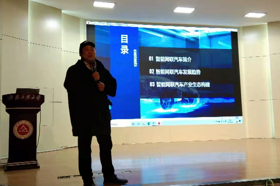 博士毕业于中国科学技术大学近代物理系。中国人工智能与机器人教育委员会专家委员,中国自动化学会会员、安徽省机器人学会常任理事、中科深谷科技发展有限公司创始人董事长、合肥工业大学智能制造技术研究院机器人公共服务平台负责人,他以“人工智能与智能网联汽车”为主题,从四次工业革命讲到目前正处于利用信息化技术促进产业变革的智能化时代,智能网联汽车依托信息通信技术实现车与(人、车、路、云端等)智能信息交换、共享,保证“安全、高效、舒适、节能”行驶。他还着重讲述了世界自动驾驶汽车技术的发展历程、国外(美国、德国、英国、法国、日本等)智能网联汽车的发展现状国内智能网联汽车的发展水平和奋斗目标。为同学们描绘了汽车电动化、智能化、网联化、共享化的发展蓝图,并号召同学们认真学习基础理论知识,关注智能网络汽车的核心技术,特别是以深度学习为代表的AI技术激光雷达等先进传感器技术、自主式智能与网联式智能技术融合,以及高速公路自动驾驶与低速区域自动驾驶系统的应用技术等。
