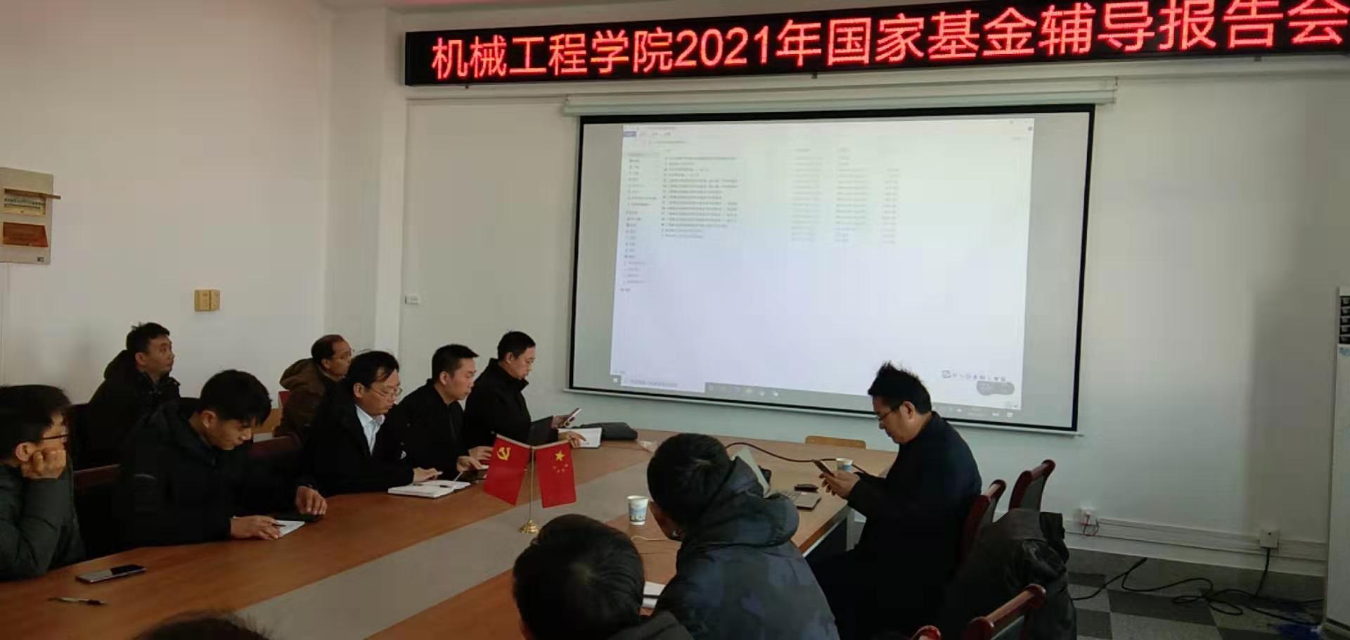 2021年1月7日下午,机械工程学院邀请校外专家,在A815召开了一场国家自然科学基金申报辅导报告会,所有参与2021年国基申报的老师约35人参加了会议,本次会议由机械工程学院副院长王建平组织并主持。