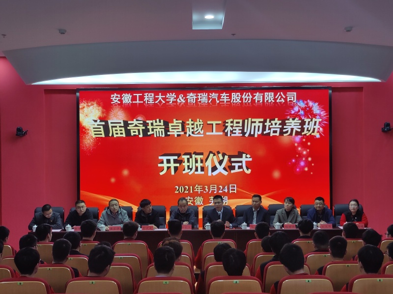 3月24日下午,奇瑞汽车股份有限公司制造中心总监韩必文等一行来校参加黑料正能量 -奇瑞汽车股份有限公司首届奇瑞卓越工程师培养班开班仪式。机械工程学院(人工智能学院)党委书记伊长文、教务处副处长贾文友、相关专业负责人、辅导员、培养班全体成员等50余人出席会议。会议由机械工程学院(人工智能学院)副院长潘家保主持。