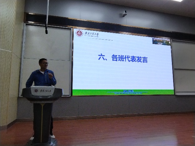 最后,2020级机械设计制造及其自动化专业的各班班长,代表各个班级从出勤、晚自习、参加课外活动、学术竞赛等方面做了交流、总结,并纷纷表态针对目前存在的一些问题会积极改正,做好党员、班干部带头示范作用,形成良好的学习氛围。此次班级主题会议,给同学们的内心带来了极大的触动,正如同学们说:“这次班会让我深刻意识到青年学生的责任与当担”;“学长学姐们的真实成长过程给了我极大的激励”;“现阶段没有资格不学习”;“老师们的科研经历听得我热血沸腾”……。
