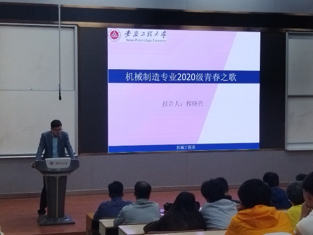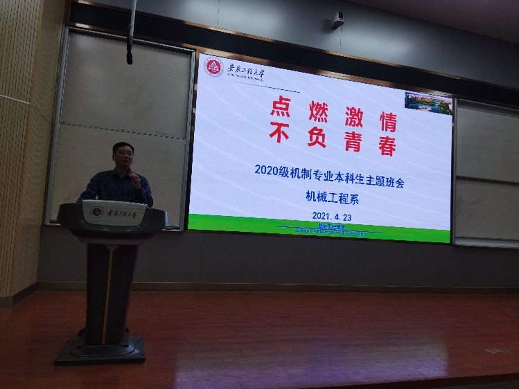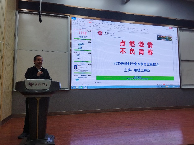 为进一步加强2020级机械设计制造及其自动化的学风建设,使同学们更加明确学习目标,4月23日晚上,机械工程系在2J报告厅组织开展了以“点燃激情,不负青春”为主题的2020级机械设计制造及其自动化专业本科生主题班会。学院党委书记伊长文、副书记何志恒、机械工程系全体本科生导师参加了会议。会议由机械工程系系主任疏达老师主持。
