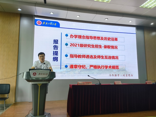 在师生见面环节,各位导师依次向同学们进行了自我介绍。导师代表肖平教授、汪步云副教授分别发言,杨爱喜教授、汪洪峰教授从自己的研究方向、学科专长等方面进行了详细的阐释。每位老师的发言和讲述中都向同学们提出了一些关于学习和生活的方面的建议,引导同学们从更高的视角重新审视研究生生活。见面会第二阶段,导师们对同学们提出的相关问题进行了耐心解答。导师见面会的召开,标志着2021级研究生新生的学习生涯正式开启。