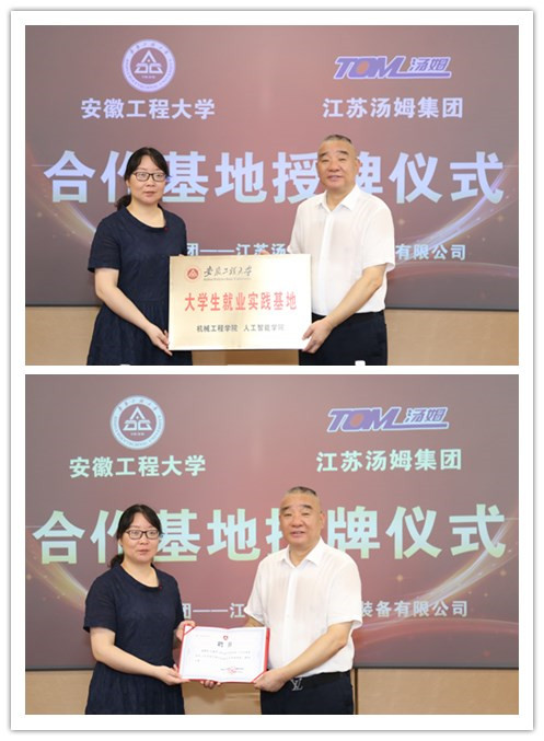 伊长文代表学院与汤姆集团签订了人才培养与就业基地合作建设协议书。李文江代表学院授予江苏汤姆公司大学生就业实践基地铜牌,同时聘请汤建华为 黑料正能量 大学生创新创业教育导师库专家。