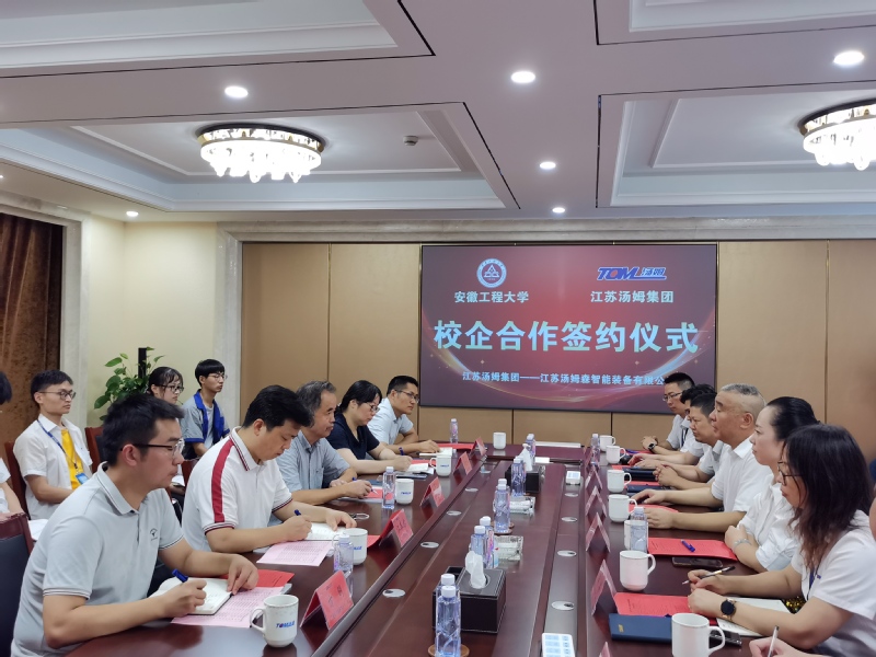 为做好2022届毕业生就业工作,巩固就业市场,加强校企交流,9月25日,机械工程学院(人工智能学院)党委书记伊长文、党委副书记李文江、副院长江本赤、智能制造系主任刘玉飞、教学秘书方明、毕业班辅导员程雷一行赴常州市江苏汤姆集团就人才培养与就业基地合作建设进行洽谈,并回访2021届毕业生。