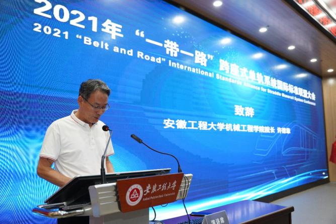 9月27日,由机械工程学院(人工智能学院)、芜湖市轨道交通有限公司、芜湖市标准化研究院、中车浦镇庞巴迪运输系统有限公司等联合承办的2021年“一带一路”跨座式单轨系统国际标准联盟(以下简称“联盟”)大会在黑料正能量 国际工程师学院隆重召开。安徽省市场监管局标准化处处长温家铨,“一带一路”区域标准化研究中心执行主任乐为,芜湖经济技术开发区管委办公室主任何学东,芜湖市市场监管局二级调研员王劲松,芜湖市轨道交通有限公司副总经理缪正祥,中车浦镇庞巴迪运输系统有限公司总经理Romuald Ponte,党总支书记、中方总经理徐海大,机械工程学院(人工智能学院)院长许德章等和联盟成员单位代表近100余人参加了大会。