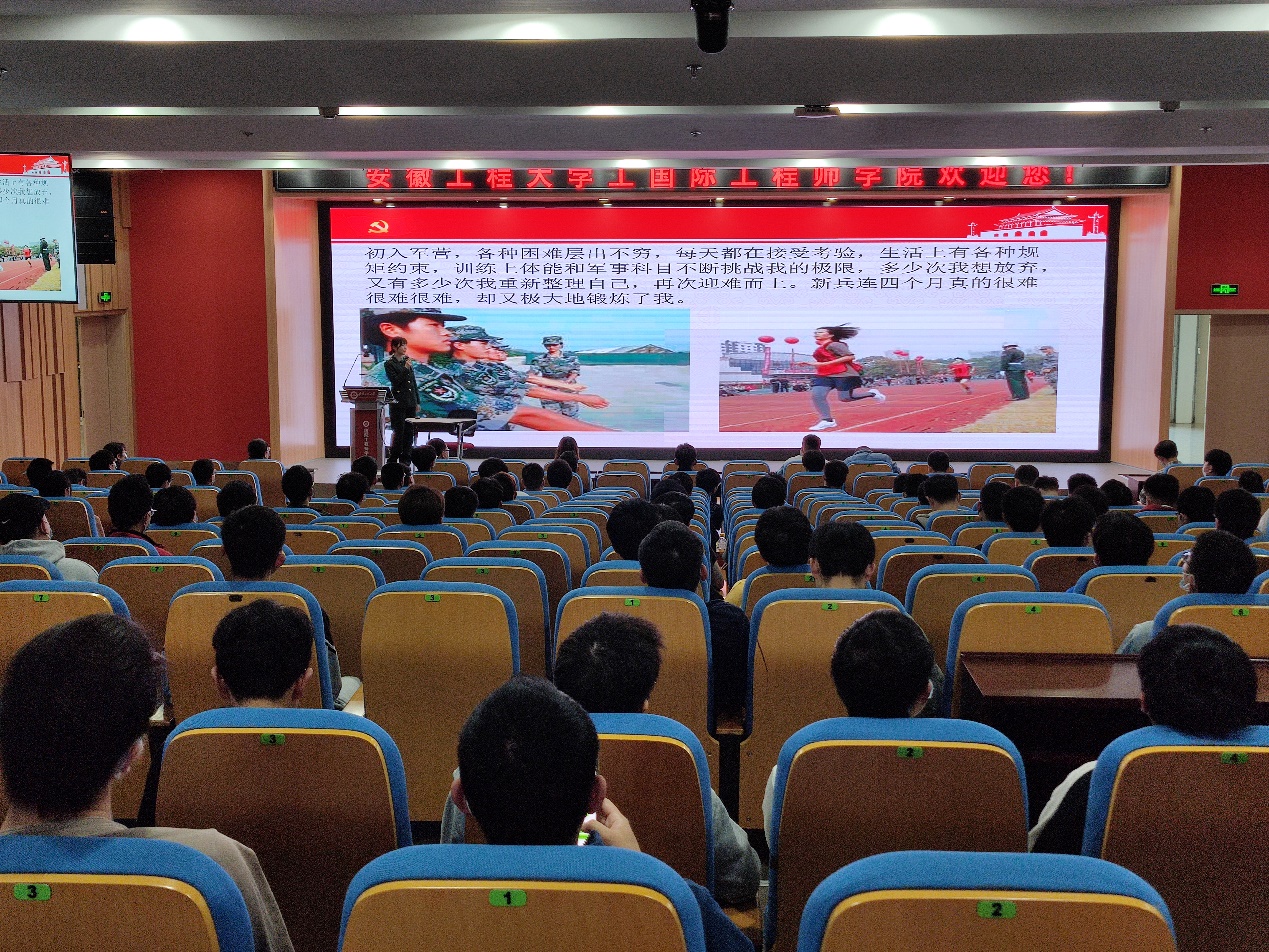 为深入贯彻落实上级和学校征兵工作部署,为军队输送高素质人才,奋力推进国防和军队现代化建设,4月7日,机械工程学院(人工智能学院)在国际工程师学院校区报告厅开展2022届毕业生征兵宣讲会,学院党委副书记何志恒、李文江出席宣讲会,校征兵工作站赵成婧、学院毕业班辅导员、学院退役复学学生机制206班韩冰冰及毕业班学生参加宣讲会。宣讲会由学院征兵工作联络员从宏超主持。