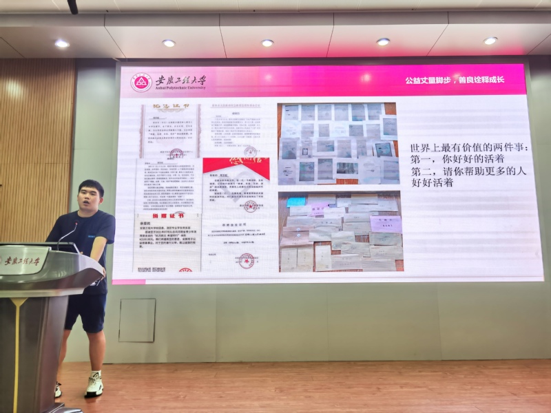 周宇航同学长期活跃在志愿服务和公益活动中,他和他的团队带动志愿者累计向贫困地区和灾区捐赠价值60万余元的资金和物资,以实际行动彰显党员担当。他通过分享自身的志愿服务经历和团学工作经验,呼吁同学们加强党性修养,投身社会实践,在帮助他人、努力奉献中实现人生价值,在探索热爱、不断奋斗中收获多元自我。志不求易,事不避难,青春从不永驻,唯有奋斗方使未来可期。