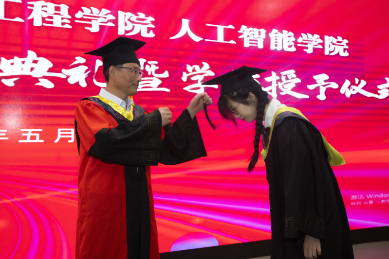 毕业典礼在嘹亮的国歌声中拉开序幕。张志宏向787名毕业生表达了热烈的祝贺和美好的祝福,深情寄语广大同学要志存高远,心怀家国;要崇德向善,知行合一;要敏于求知,砥砺奋斗。希望同学们秉承“尚德敏学 唯实惟新”的校训,弘扬“雨耕勤作 赤铸精工”的大学精神,不负韶华,不负时代,不负人民,在青春的赛道上奋力奔跑,努力成长为堪当民族复兴重任的时代新人。