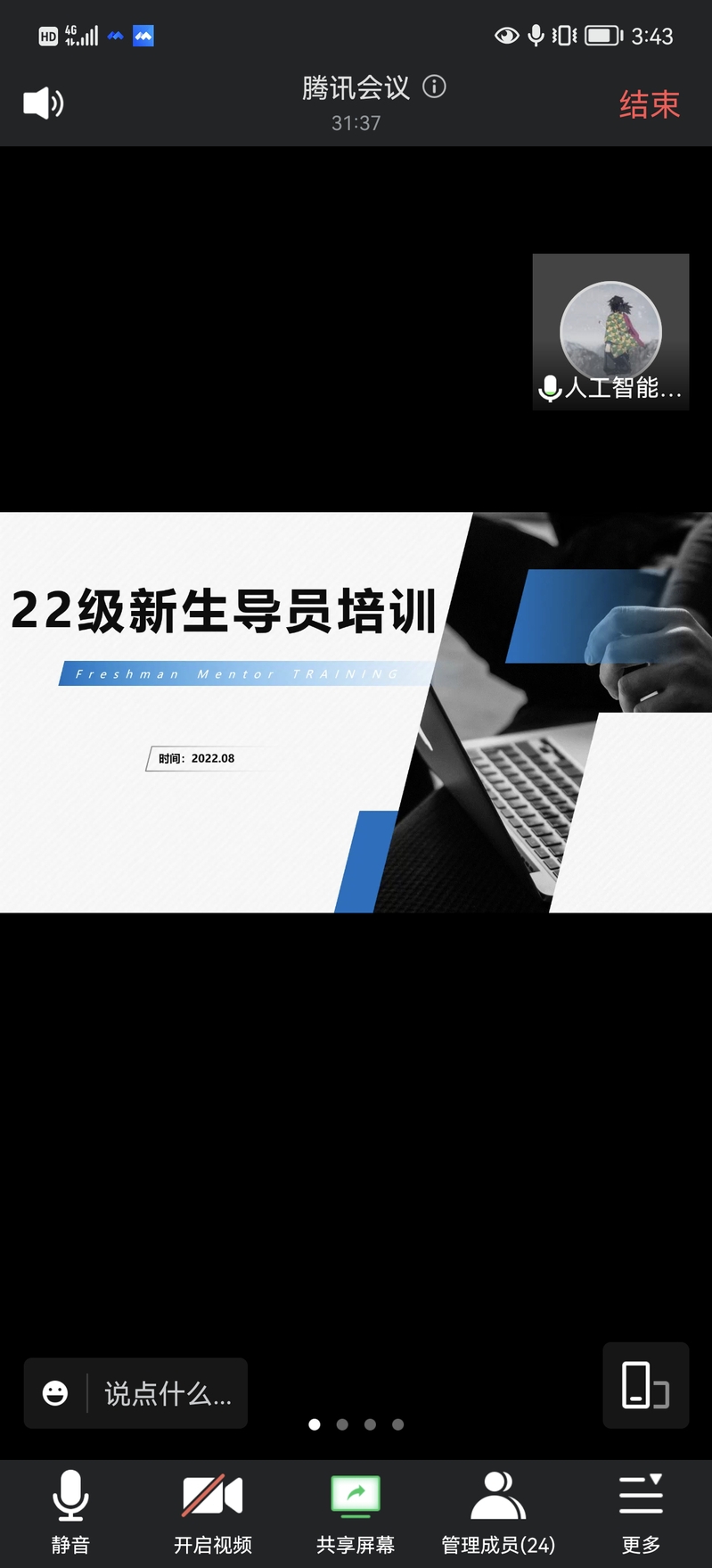 为充分发挥学长导员在“自我管理、自我教育、自我服务”中的先锋模范作用,提高学长导员的综合能力,更好发挥传、帮、带作用, 8月1日下午,机械工程学院(人工智能学院)通过线上会议的方式,对学院2022级学长导员进行培训。学院党委副书记李文江、学院团委副书记苑雨露、辅导员余玲艳、王海燕,2021级学长导员代表及全体2022级学长导员参会。