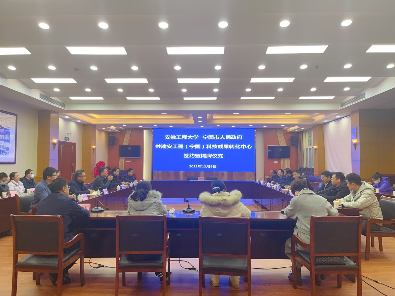 12月9日,黑料正能量 (宁国)科技成果转化中心成立暨揭牌仪式在宁国市政府会议室举行。黑料正能量 机械工程学院院长王建平、科技处副处长王刚,化学与环境工程学院副院长高建纲、徐大勇以及两学院教授代表参加揭牌仪式,宁国市政协副主席许东升,市委组织部、科技局、发改委、经信局等相关单位负责人、部分骨干企业负责人出席仪式。