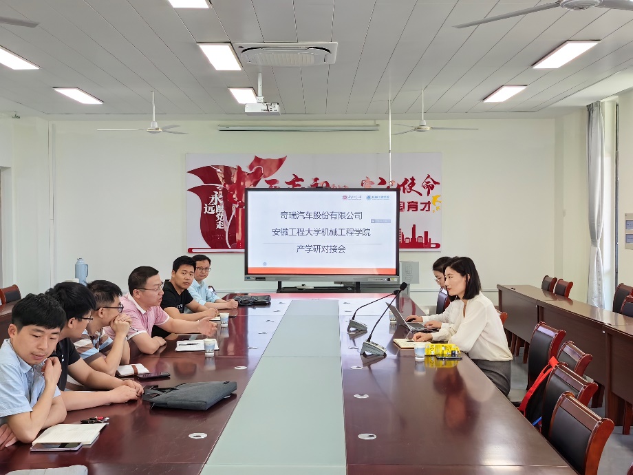 焦方方对机械工程学院长期为奇瑞公司输送人才表示感谢,也希望借势学校的人才聚集优势,强化合作,加强与机械工程学院教授、青年博士的交流和深度对接,建立精准的技术匹配资源库,为长期合作打基础。
