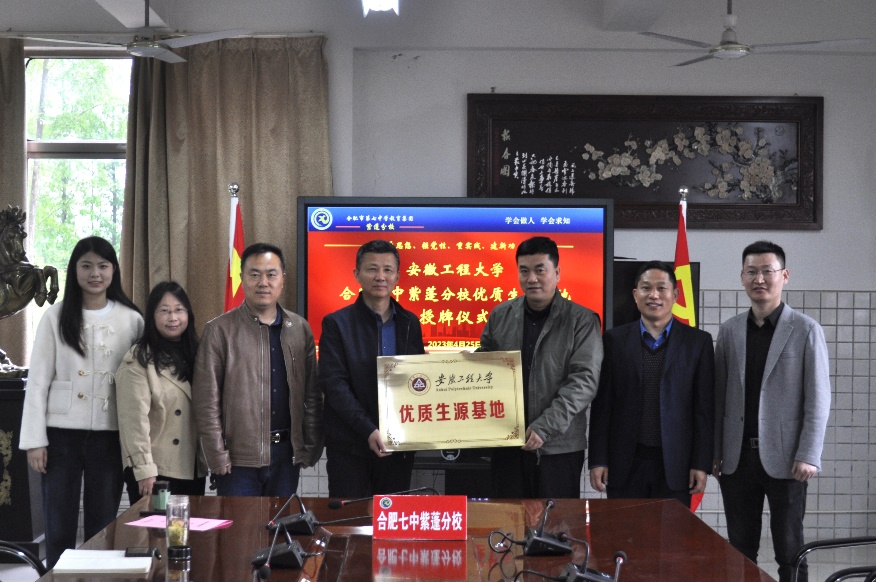 为进一步拓展我校优质生源基地,提高生源质量,促进我校与高中的交流合作,4月26日,机械工程学院院长王建平、副院长王建彬、系主任、辅导员等一行赴合肥市肥西县开展招生宣传,与肥西中学、合肥七中紫蓬分校等两所省示范高中签订了优质生源基地协议并授牌。