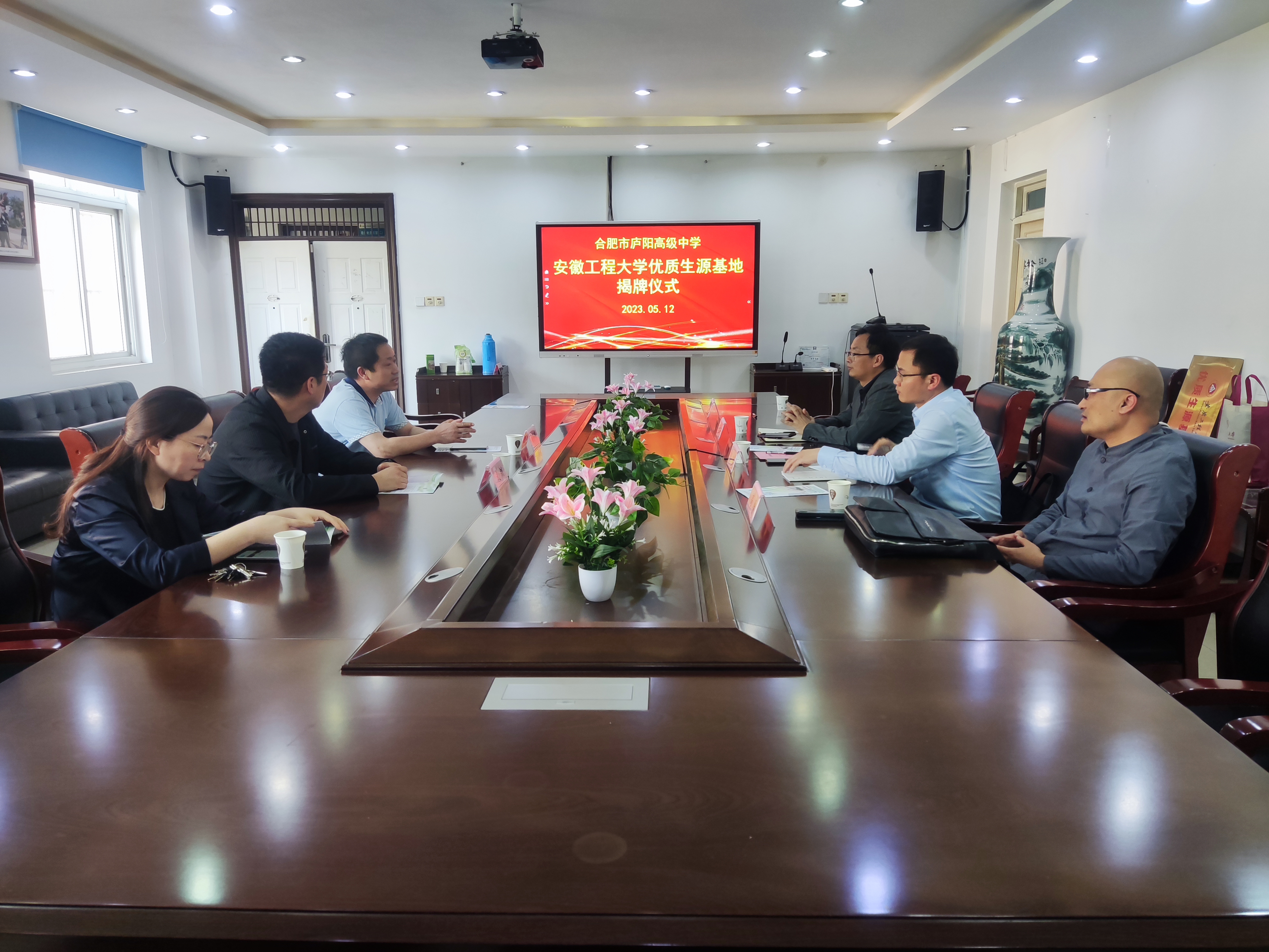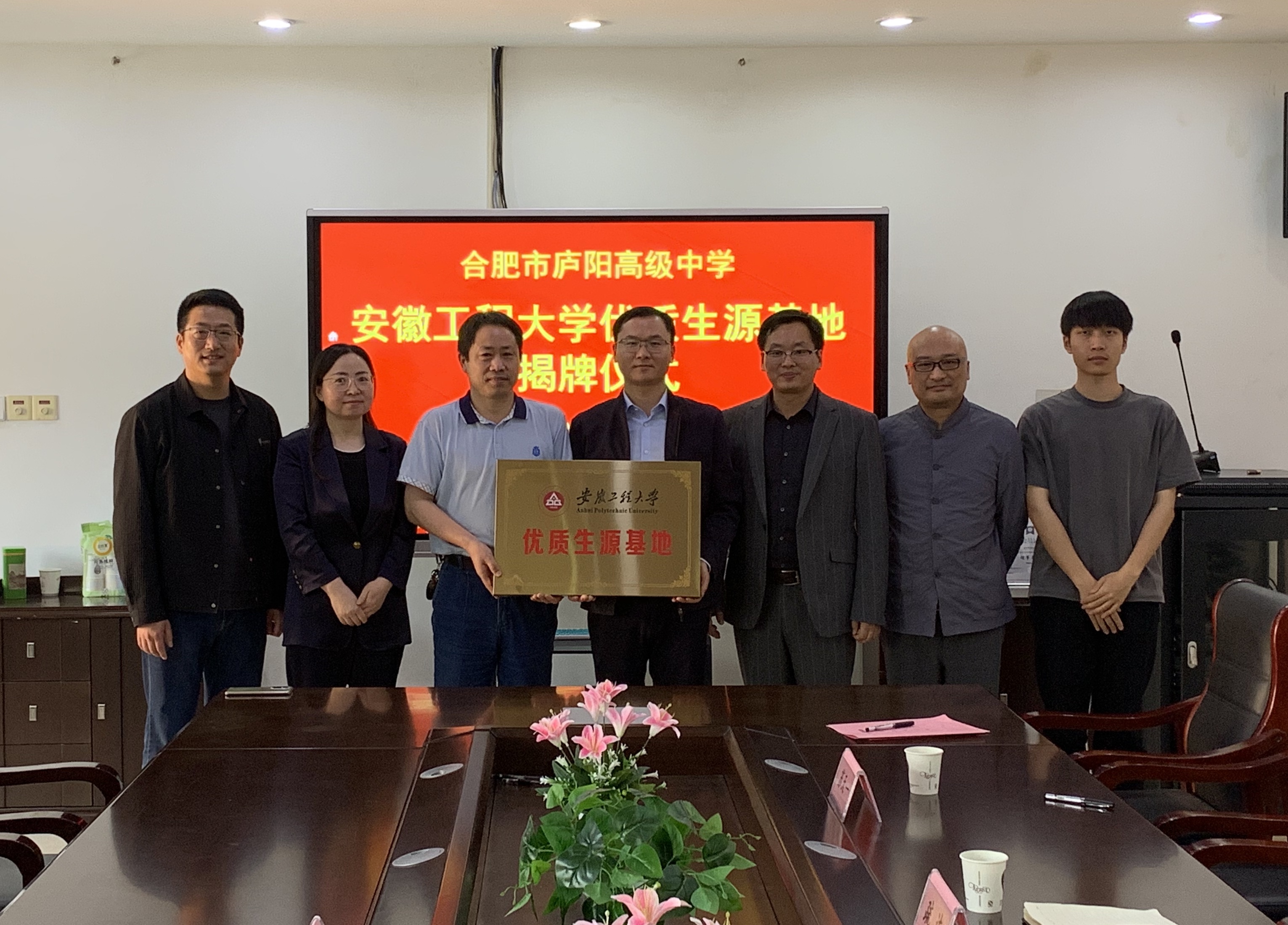 为进一步提高我校生源质量,加强我校与各地区高中的交流合作,5月12日,机械工程学院党委副书记秦广虎、机械工程系疏达教授等一行赴合肥市开展招生宣传,与合肥市庐阳高级中学、长丰北城衡安学校两所高中签订优质生源基地协议并授牌。