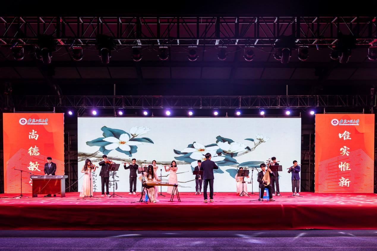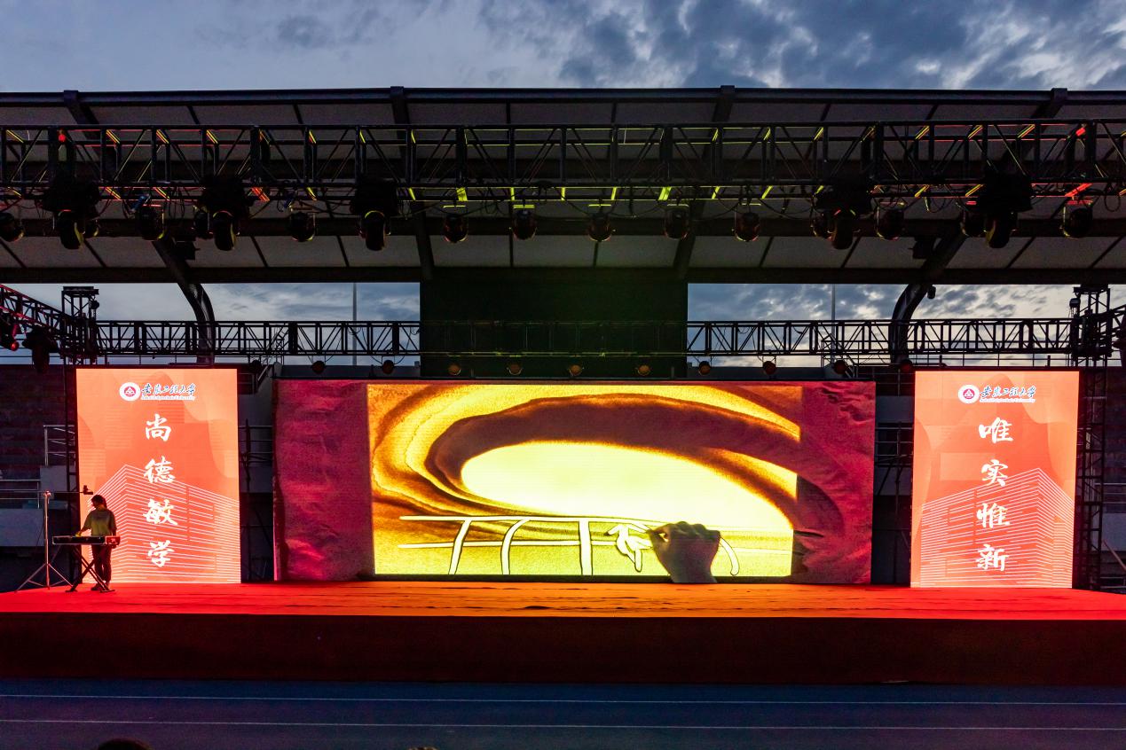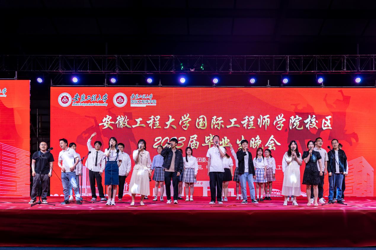 毕业晚会在音乐与舞蹈交织、激情与青春碰撞中拉开帷幕,独立主格乐队和B座九楼乐队带领观众遨游于音乐的海洋中,让观众在歌声中感受青年的才智与朝气,领略艺术的魅力与韵味。本次晚会节目形式多样、内容丰富,有奇妙美丽的沙画《大鱼海棠》,有刚柔并济的武术《徽程武魂》,有诙谐风趣的小品《倩女幽魂》,有师生精心准备的歌曲《一路生花》《眼前的你》《最美的太阳》,有动漫社带来的COS走秀《槿樱之夏》,有经典舒缓的器乐表演《茉莉花》,有优美动感的舞蹈《百花争研》《I GOT A BOY》《小城夏天+don't know what to do》,有铿锵有力的舞狮表演《祥狮献瑞》,每个节目都独具特色,充满青春色彩与美好祝愿。晚会期间,台上演员们精心演绎、各展风采,为现场观众带来一场精彩绝伦的视觉盛宴,台下气氛热烈,掌声与欢呼声此起彼伏。