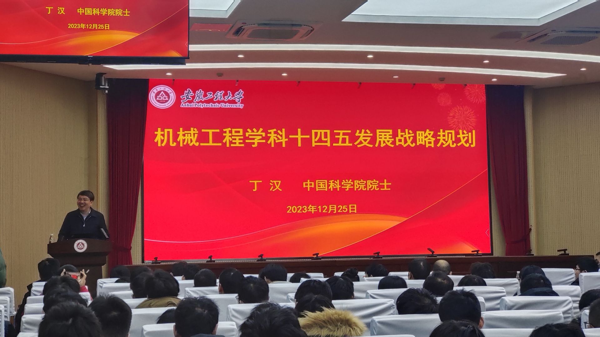 12月25日,中国科学院院士、华中科技大学校学术委员会主任、国家数字化设计与制造创新中心主任丁汉教授一行应邀来校指导学科建设并做学术报告。校党委副书记、校长卢平,校党委常委、副校长凤权,研究生部、科技处、机械工程学院及人工智能学院负责人,教师代表、机械学科全体研究生参加了活动。