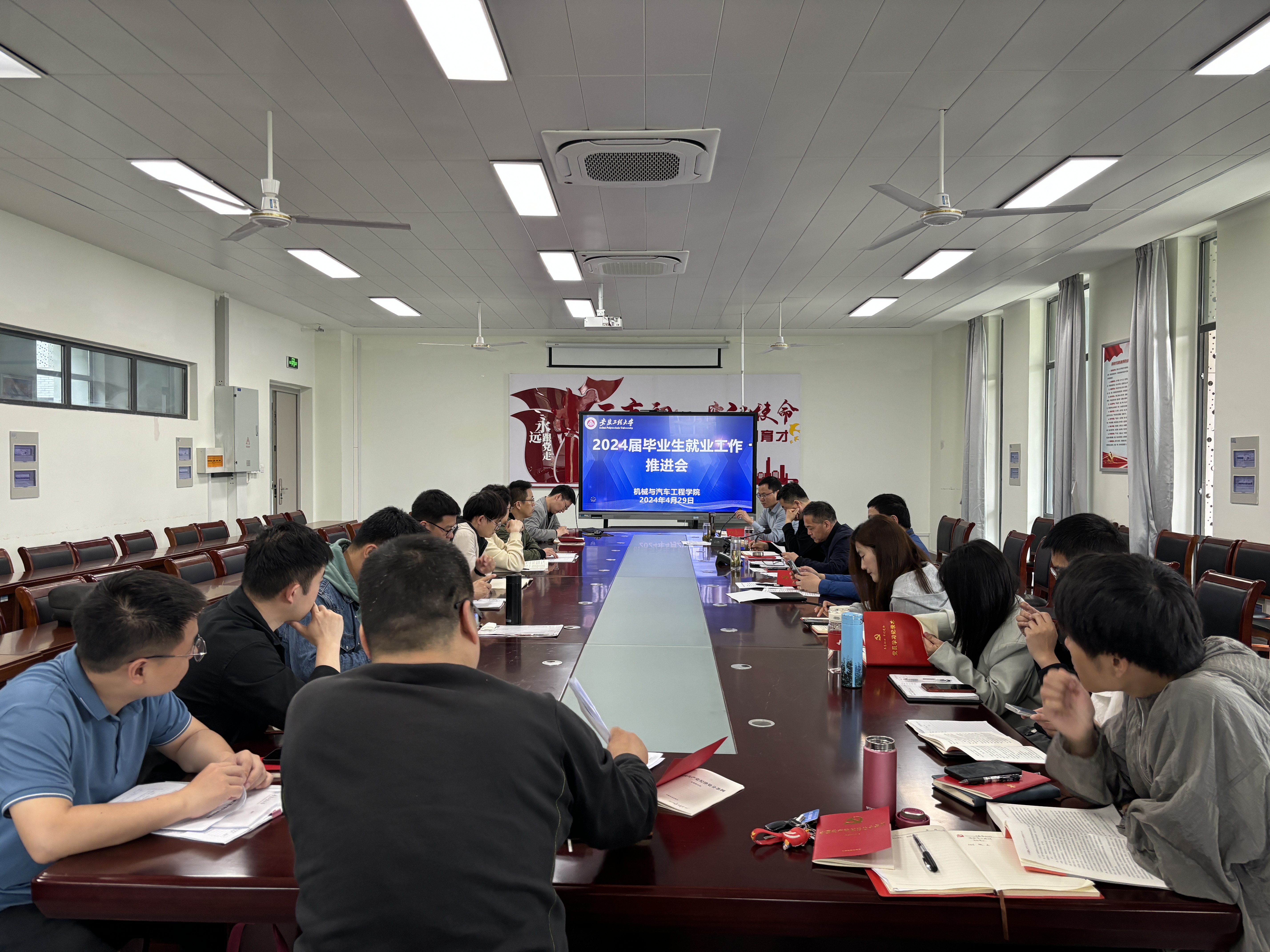 王建平总结时指出,学院2024届毕业生就业形势依然严峻,要坚决贯彻落实上级部门关于稳就业、促就业、保就业的决策部署,针对尚未就业学生要进行台账化管理,一生一策。困难学生要建立学院领导班子包保责任制,实现全部就业。要充分发挥本科生(研究生)导师、毕业设计指导教师作用。要抓住5月份就业黄金关键期,积极做好就业服务指导。