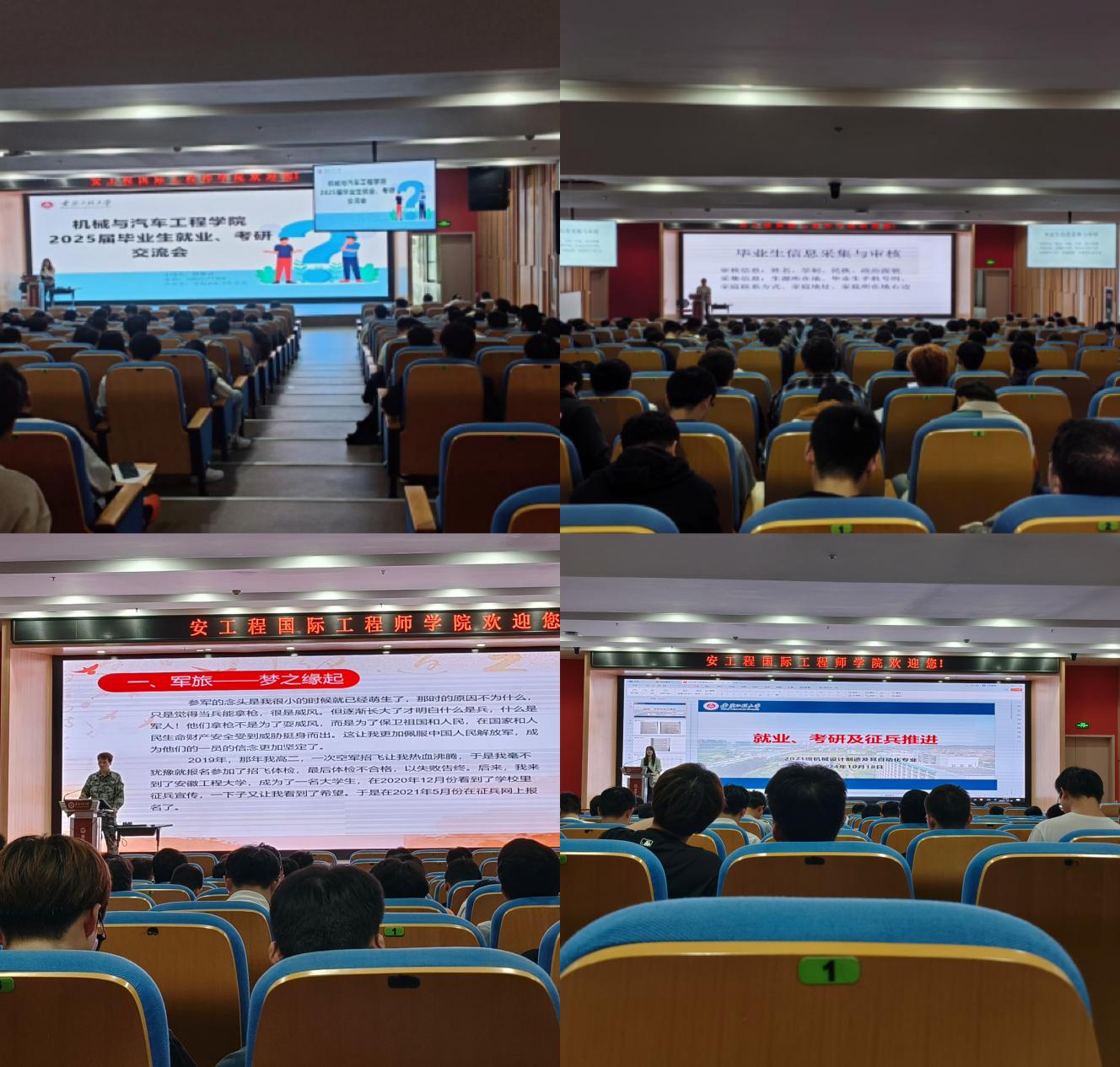 为深入贯彻国家关于高校毕业生就业和征兵入伍的政策精神,切实做好毕业学生就业、考研和征兵入伍工作, 黑料正能量 院分别于10月16日和10月18日在国际工程师学院校区赤铸报告厅召开征兵入伍动员会暨2025届毕业生就业、考研交流会。校征兵工作站赵成婧、毕业班辅导员、退役复学学生代表及2025届全体毕业生参加会议。