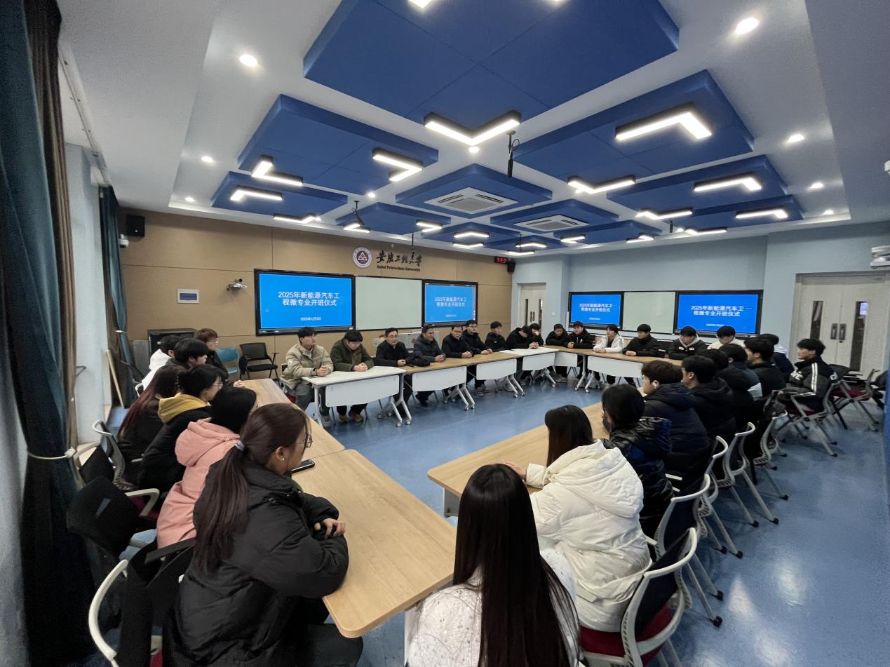 王建彬对各位同学入选微专业表示热烈欢迎和衷心的祝贺,介绍了微专业的开设背景、目的和意义,以及微专业建设的基本原则和思路,讲解了微专业的修读期限、学业证书授予等基本情况。他指出,新能源汽车行业的发展前景广阔,希望同学们通过在微专业的学习,掌握新能源汽车专业相关知识和技能。时培成详细介绍了微专业的教学模式、课程设置、考核方式以及师资团队与平台等情况,强调理论与实践相结合的教学理念,以及与行业紧密结合的重要性。秦广虎希望同学们珍惜这次学习机会,刻苦学习,积极实践,服从班级管理,做到学有所获,并针对学期末诚信考试、校园安全、返乡安全等进行提醒。