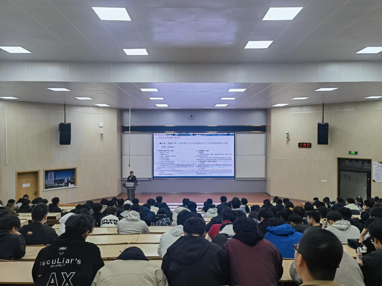 钟相强凭借其丰富的竞赛指导经验,为学生描绘了一幅从理论到实践、从课堂到赛场的生动图景。他不仅详细解析了参与大学生先进成图大赛、“西门子杯”中国智能制造挑战赛、大学生机械创新设计大赛等重量级赛事的意义与价值,还从参赛动机、策略规划、赛前准备到技能提升,全方位地分享了宝贵经验。