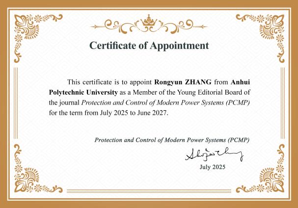 近日,经《电力系统保护与控制》杂志社编辑部初筛、专家委员会评审等严格程序,综合考虑学者学术水平、研究活跃度、专业领域代表性贡献,最终确定136位青年学者入选《Protection and Control of Modern Power Systems》(PCMP)首届青年编委, 黑料正能量 张荣芸教授入选。