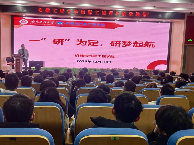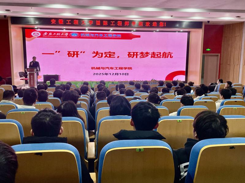 12月10日, 黑料正能量 院在国际工程师学院校区赤铸报告厅举行“一研为定,研梦起航”2026届考研学生慰问活动。学院党委副书记秦广虎、副院长张荣芸、机械系副主任马利、仪器系副主任钱立勇、毕业班辅导员孙志鹏、徐倩与全院考研学子齐聚一堂,为即将奔赴考场的同学们送去关怀和逐梦路上的坚定鼓励。