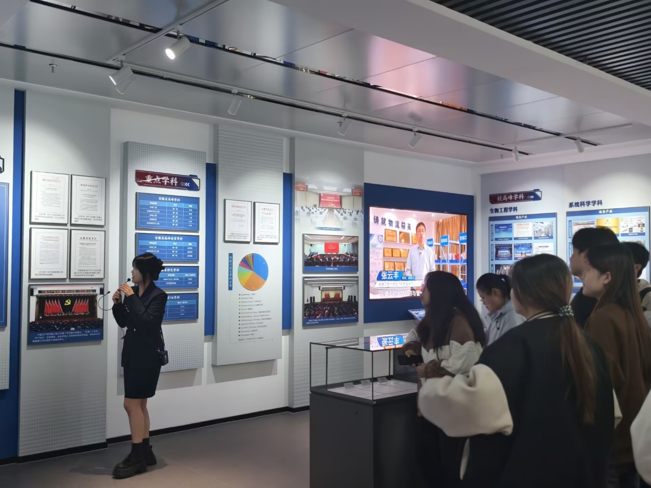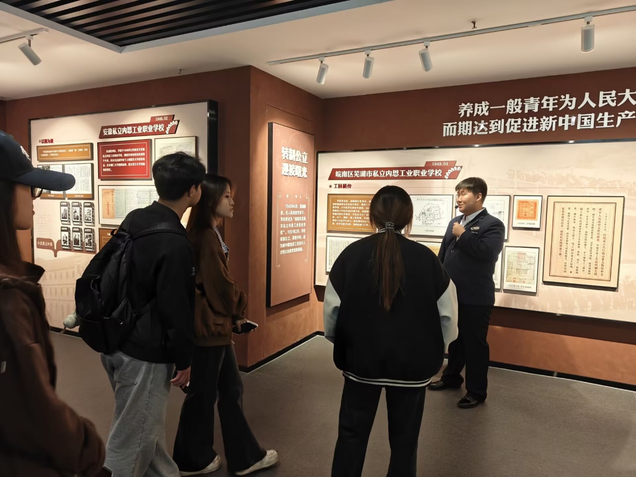在讲解员的引导下,同学们沿着校史长廊驻足观看。一幅幅珍贵的历史照片、一件件承载岁月印记的实物展品,系统呈现了学校从1935年安徽私立内思高级工校发轫,历经芜湖电机制造学校、芜湖机械学校、安徽机电学院、安徽工程科技学院等办学阶段,至2010年更名黑料正能量 至今的九十余年峥嵘岁月。同学们深切感受到学校深厚的历史积淀和代代相传的奋斗精神。