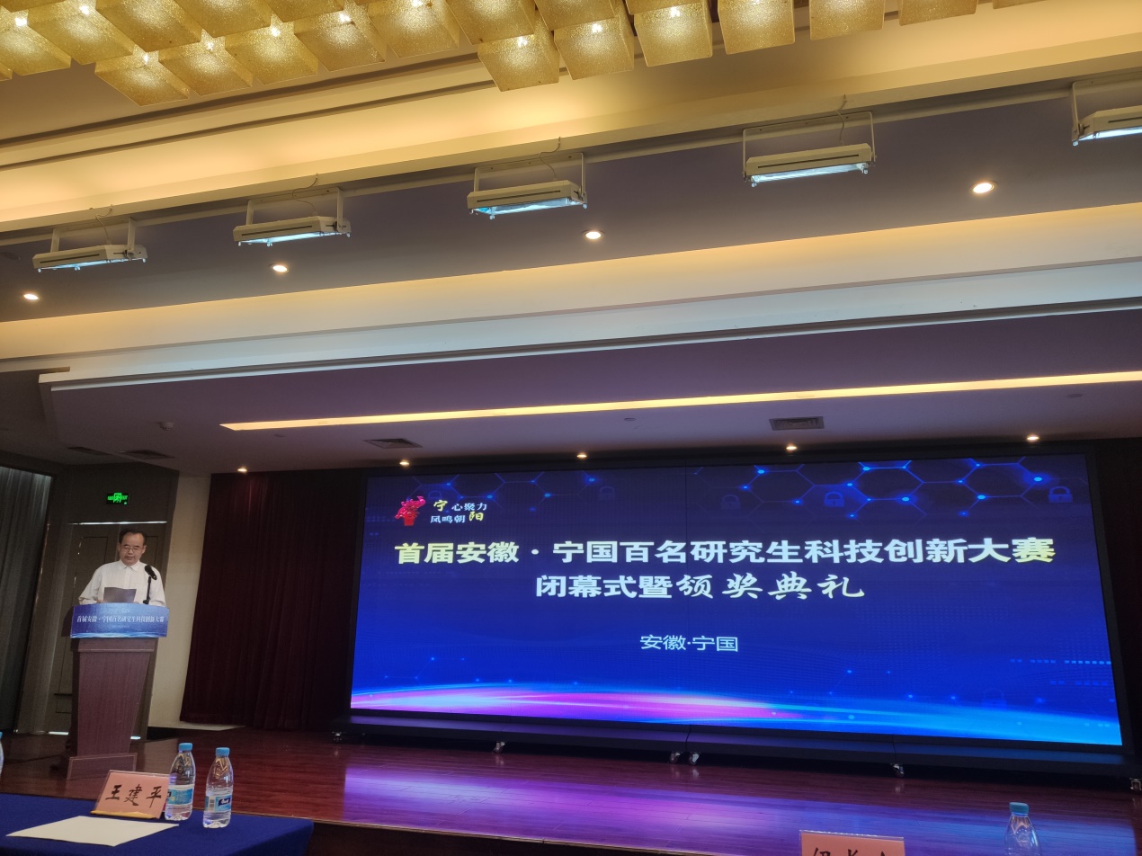 最后,伊长文作大会闭幕致辞。伊长文对获奖研究生表示热烈的祝贺!向评委专家、工作人员表示诚挚的敬意!向承办本次大赛的宁国市组织部、经信局、科技局等单位表示衷心的感谢!伊长文表示希望各方以此次大赛为契机,深化校企合作,建立教育与产业对话机制,搭建对话协作平台,加强行业指导,全面提高人才培养质量。同时也希望赛事组委会对本次大赛进行充分总结,为来年的大赛做好准备,并期望大家积极参与,共同打造赛事品牌!