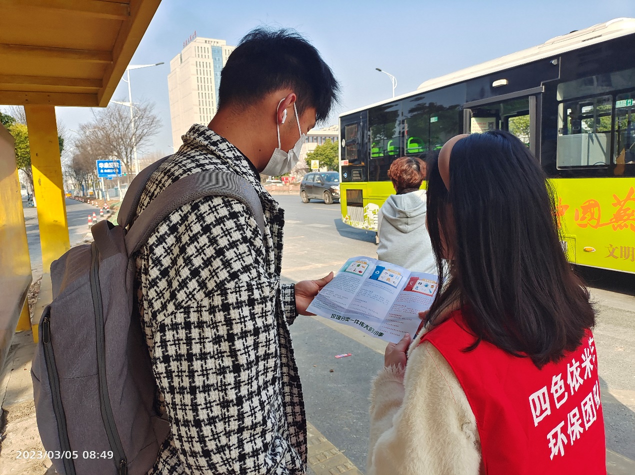 垃圾分类科普宣传活动。活动过程中,青年志愿者们面向路人分发“垃圾分类,从我做起”宣传册、科普垃圾分类相关知识,并积极采访路人对垃圾分类的看法和建议。