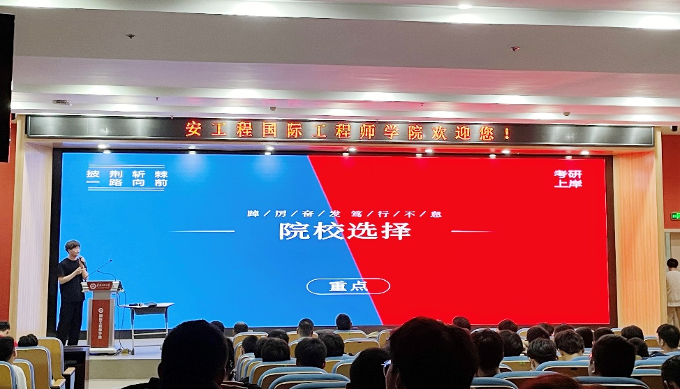 会议伊始,王安恒结合学院考研情况进行分析与讲解,就院校选择、备考策略、复习技巧等方面提出了自己的见解与建议,提醒同学们要全方位了解意向院校的情况关注官方网站发布的信息