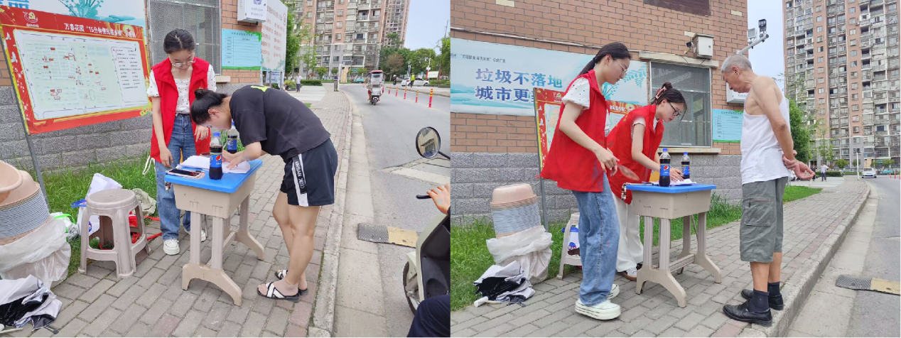 在活动过程中,团队成员根据任务分工情况向过往居民分发调查问卷,了解社区内车辆停放的相关问题遇到不识字的老人,团队成员便为他们细心讲解,将问卷上的问题及选项读给他们听,以尽可能保障调研样本的全面性得到更加真是可靠的数据面对活动过程中困难,如居民不理解、天气炎热、下雨等情况,团队成员亦团结一致、凝心聚力。最终活动顺利开展,也获得了居民们的认可。