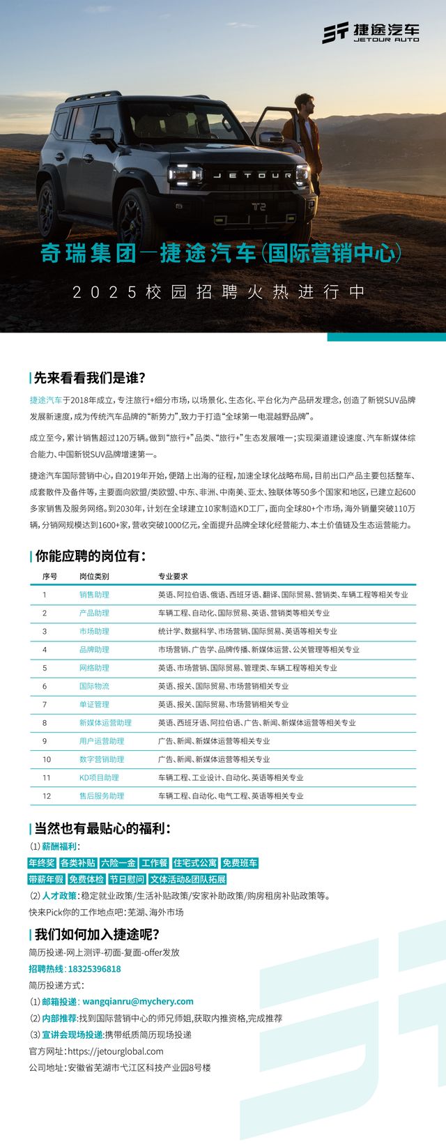 奇瑞集团—捷途汽车(国际营销中心)宣讲安排