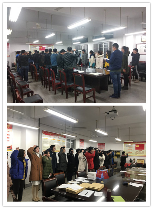 “我志愿加入中国共产党,拥护党的纲领,遵守党的章程,履行党员义务......”新党员和老党员一起佩戴党员徽章并进行庄严宣誓。大家面向党旗,举起右手,跟随领誓人,庄严地向党旗宣誓,表达对党的忠诚、为共产主义事业奋斗终生的决心。