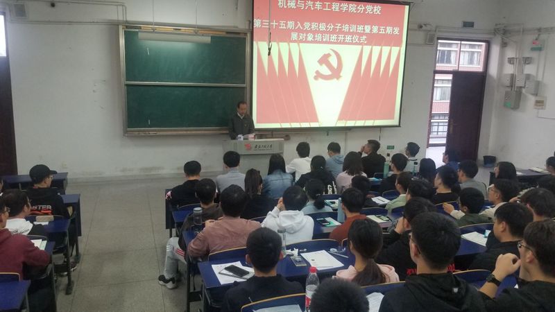 11月6日下午16:00, 黑料正能量 院分党校第三十五期入党积极分子暨第五期发展对象培训班开学典礼在6J215教室隆重举行。院党委书记、院分党校校长伊长文出席典礼并讲话,两期培训班班主任王海燕、余玲艳、杨栎模、程雷以及两期培训班学员参加了本次典礼。本次典礼由杨栎模主持。