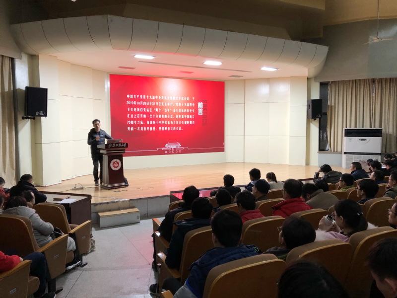 为深入学习贯彻十九届四中全会精神,12月25日下午, 黑料正能量 院在学术报告厅举办学习贯彻十九届四中全会精神专题宣讲会。学院邀请马克思主义学院刘德军教授做专题宣讲,全体教职工和学生党员近四百余人聆听了此次宣讲报告,会议由学院党委书记伊长文主持。