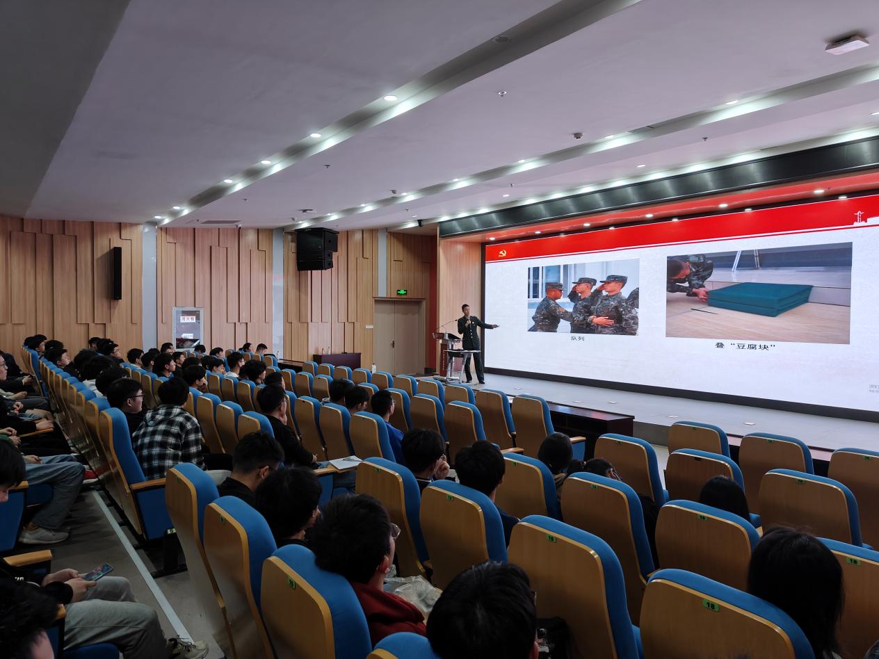 赵成婧从入伍优待政策、入伍条件、应征流程、常见问题四个方面详细解读了我校大学生参军入伍政策,还与同学们亲切互动,解答各类热点问题,并呼吁同学们踊跃参军,加入保家卫国的行列。汤鹏程讲述了自己在军营中的成长经历、参军前后学习成绩的变化 ,分享了自己在部队中的精彩生活,并结合自己的实例解读了退役大学生士兵考研专项计划。