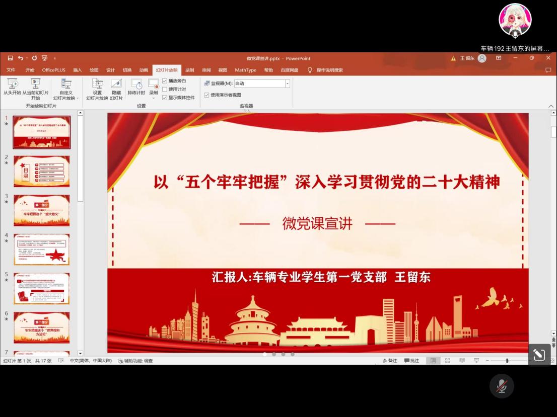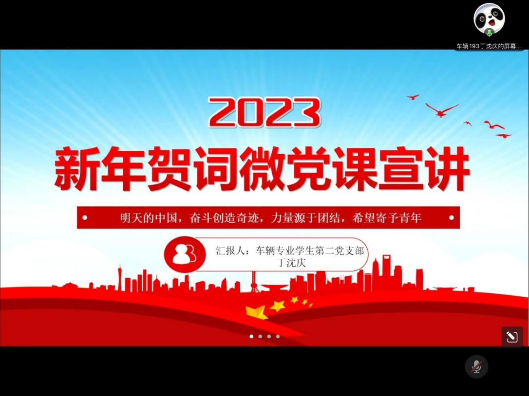 为深入学习贯彻习近平新时代中国特色社会主义思想,以高质量党建推动高质量发展,5月3日,机械工程学院车辆专业学生第一党支部,车辆专业学生第二党支部,交通专业学生党支部联合开展“一部一品”活动之线上微党课宣讲,会议由何琳主持。