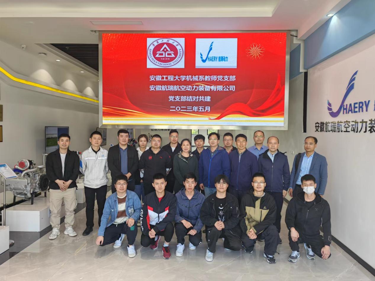 为深入推进学习贯彻习近平新时代中国特色社会主义思想主题教育,深层次探索校企党组织结对共建新思路,切实打造好机械系教师党支部“产教融合先锋队”的创新发展品牌。5月9日上午,机械系教师党支部赴安徽航瑞航空动力装备有限公司开展党支部结对共建及产学研对接交流活动。机械工程系党员教师代表、机制专业20级学生党员代表、辅导员代表和航瑞航空动力装备有限公司党组织负责人参与结对共建活动。