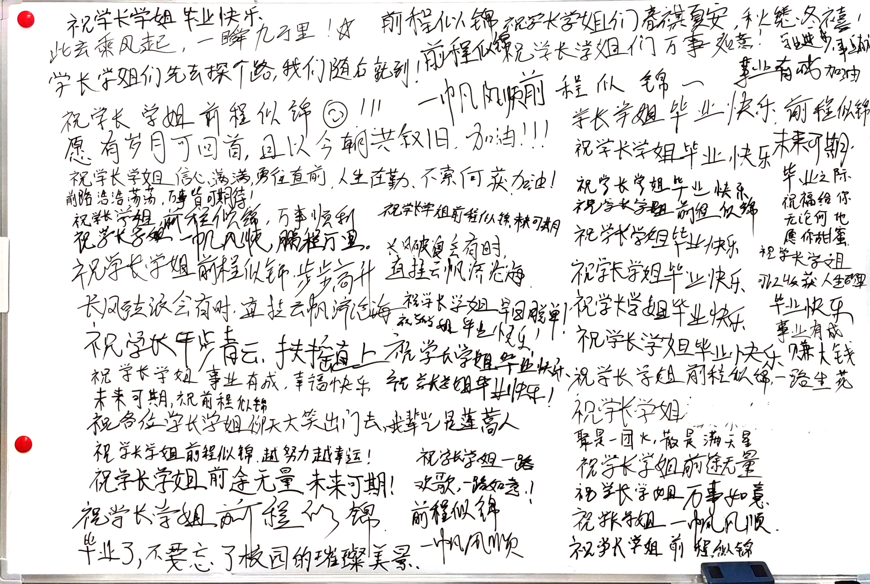 纸短情长,祝福启航526日,学院依托国际工程师学院校区学生书院7-2的青年服务中心及“壹心壹意”工作室开展“妙笔生花,情谊传达”——祝福毕业生活动。非毕业班年级学生在白板上书写对毕业生的真挚祝福,并与祝福语合影留恋。参与人员送出对毕业生的祝福青年服务中心领取夏日清凉甜蜜礼盒,学院相关工作人员也会将祝福及时送达毕业班学子。此次活动旨在为非毕业班学生减轻期末备考压力,加强心理建设,同时鼓励非毕业班学生在为学长学姐送出祝福的同时加深对未来规划的思考
