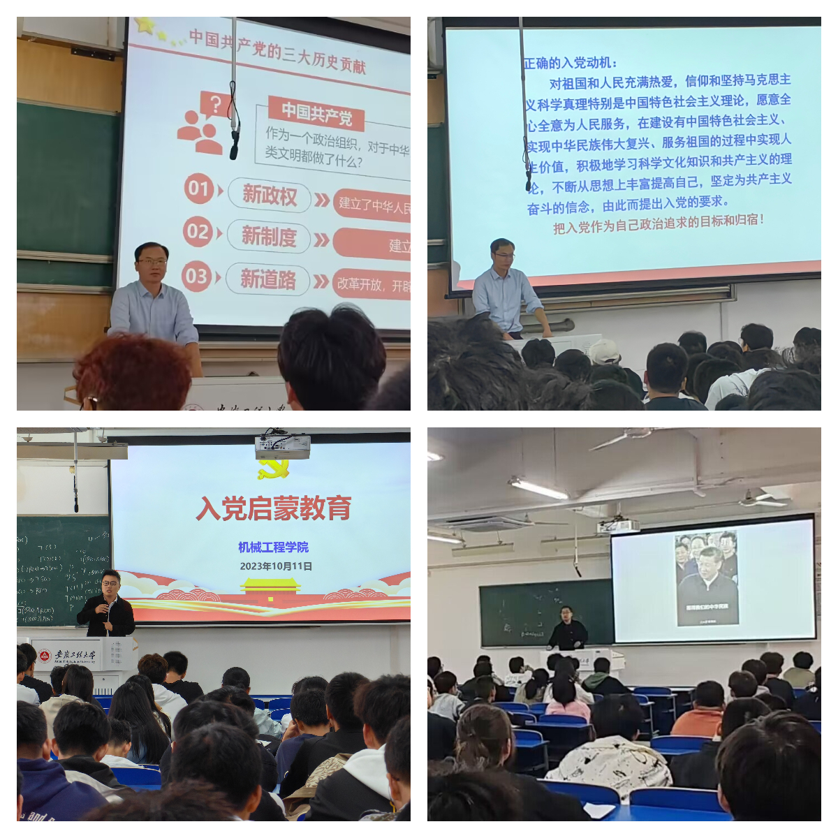 集中聆听一次“启蒙讲座”。为增进同学们对党的知识认知,端正入党动机。10月11日,机械工程学院组建宣讲团,面向2023级学生开展以“为什么加入中国共产党”主题的党课宣讲。会上,宣讲老师以党史为主线,讲述百年大党的发展成就,通过鲜活的案例和通俗易懂的理论讲解,阐述了党的性质、党的宗旨、党的指导思想、党的基本路线和基本纲领等内容,使同学们认识到端正入党动机的重要性和成为一名合格的共产党员应具备的条件。