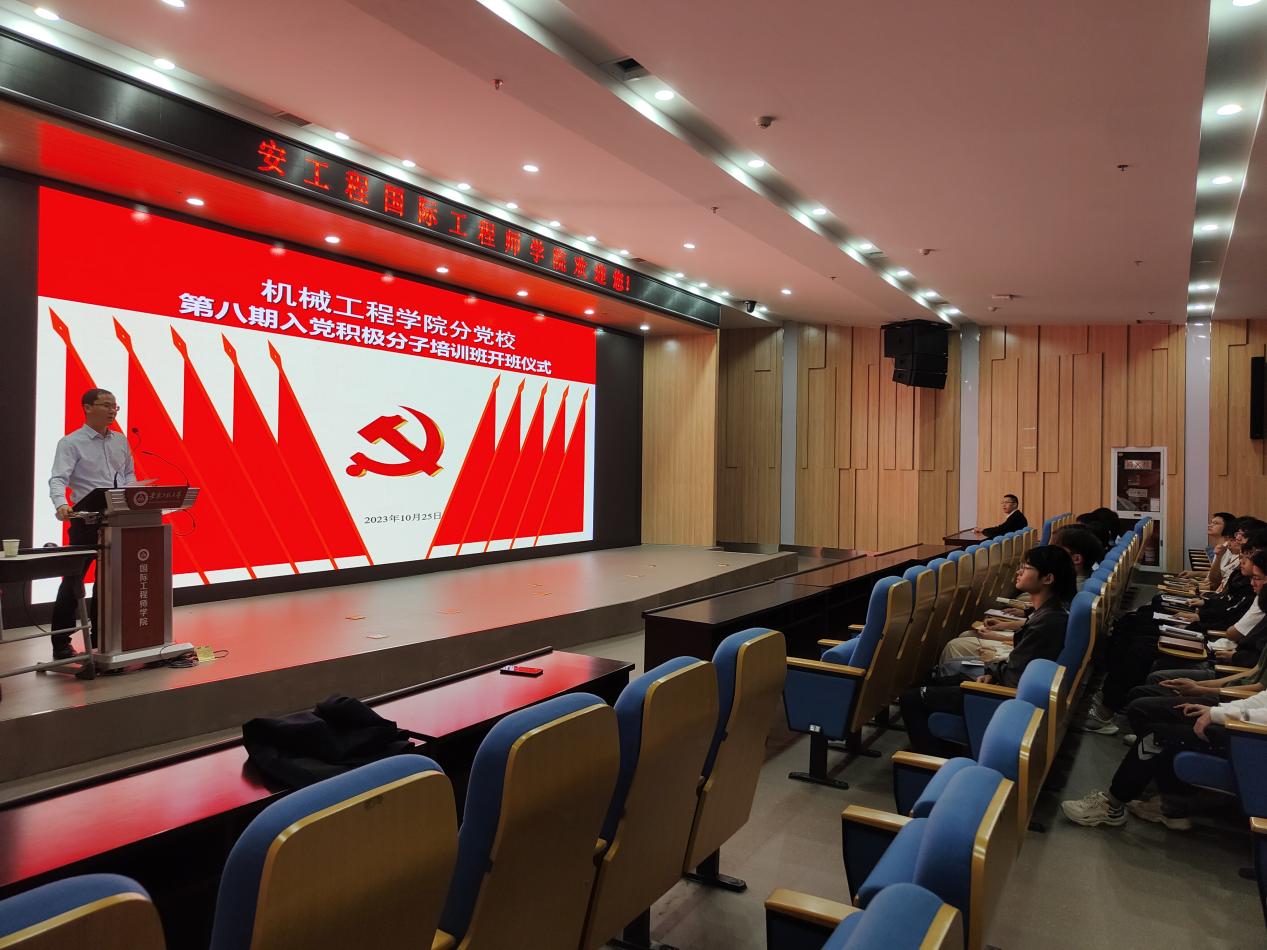 为进一步提升党员发展质量,端正入党动机,提高党性修养,加深对入党的基本知识和基本理论的认识和了解。10月25日,机械工程学院第八期入党积极分子培训班开班仪式在国际工程师学院大报告厅举行。学校关爱下一代委员会寿达军老师、学院党委副书记秦广虎、学院研究生第一党支部书记程雷、分党校培训班班主任徐倩及全体培训班学员参加了开班仪式。开班仪式由徐倩主持。