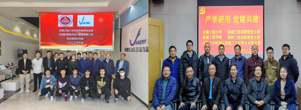 党建引领,结对共建聚合力,校企联合促发展。工作室坚持发扬高质量党建引领学校高质量发展的导向精神,积极整合现有专业教师的学科专业特点,以课题组形式建立优势专业团队。工作室积极牵头联系芜湖及周边企业,探索校企基层党支部结对共建的发展模式,为企业和专业教师架起沟通交流的桥梁,发挥教师的专业优势积极帮助企业解决技术难题,在技术升级改造、项目申报、专利指导等多环节全周期为企业排忧解难。机械系教师与企业的产学研合作推进速度明显加快,专业教师的工程实践背景和解决复杂工程问题的能力得到切实提高。2022年度机械系教师党支部成员共定点联系企业53家,签订横向合同38项,横向到账经费累计319.32万元。