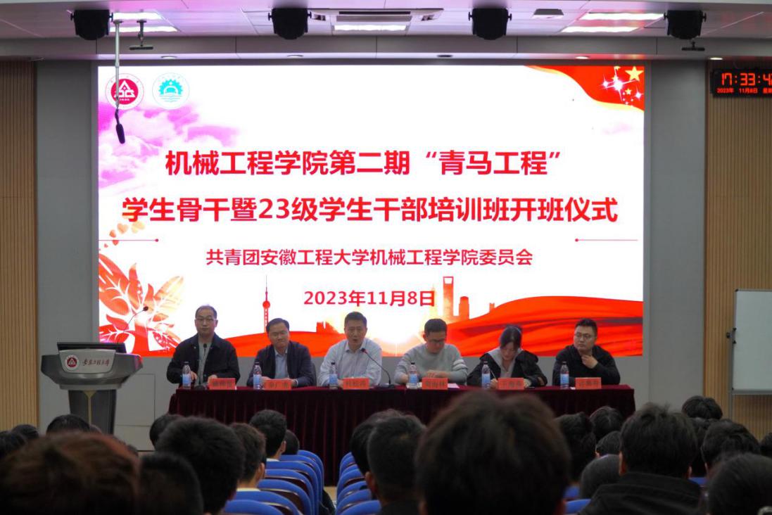 为落实学校“三全六专”育人实践,持续加强学生干部队伍建设,打造一批综合素质高、业务能力强的团学骨干,11月8日,机械工程学院在5J117举办第二期“青马工程”学生骨干暨学生干部培训班开班典礼。校学生处副处长杜松涛、团委副书记周海林,机械工程学院党委副书记秦广虎、团委副书记王海燕、新生辅导员和全体学员参加典礼。典礼由培训班班主任姚伟波主持。