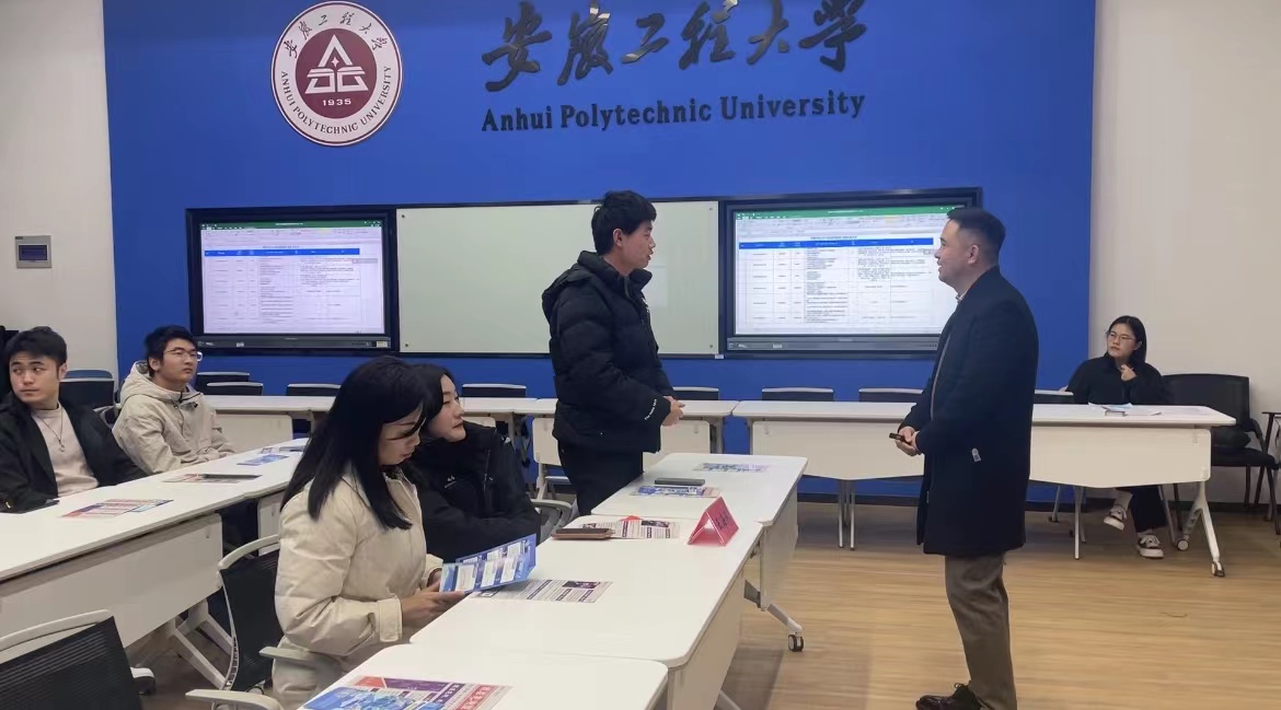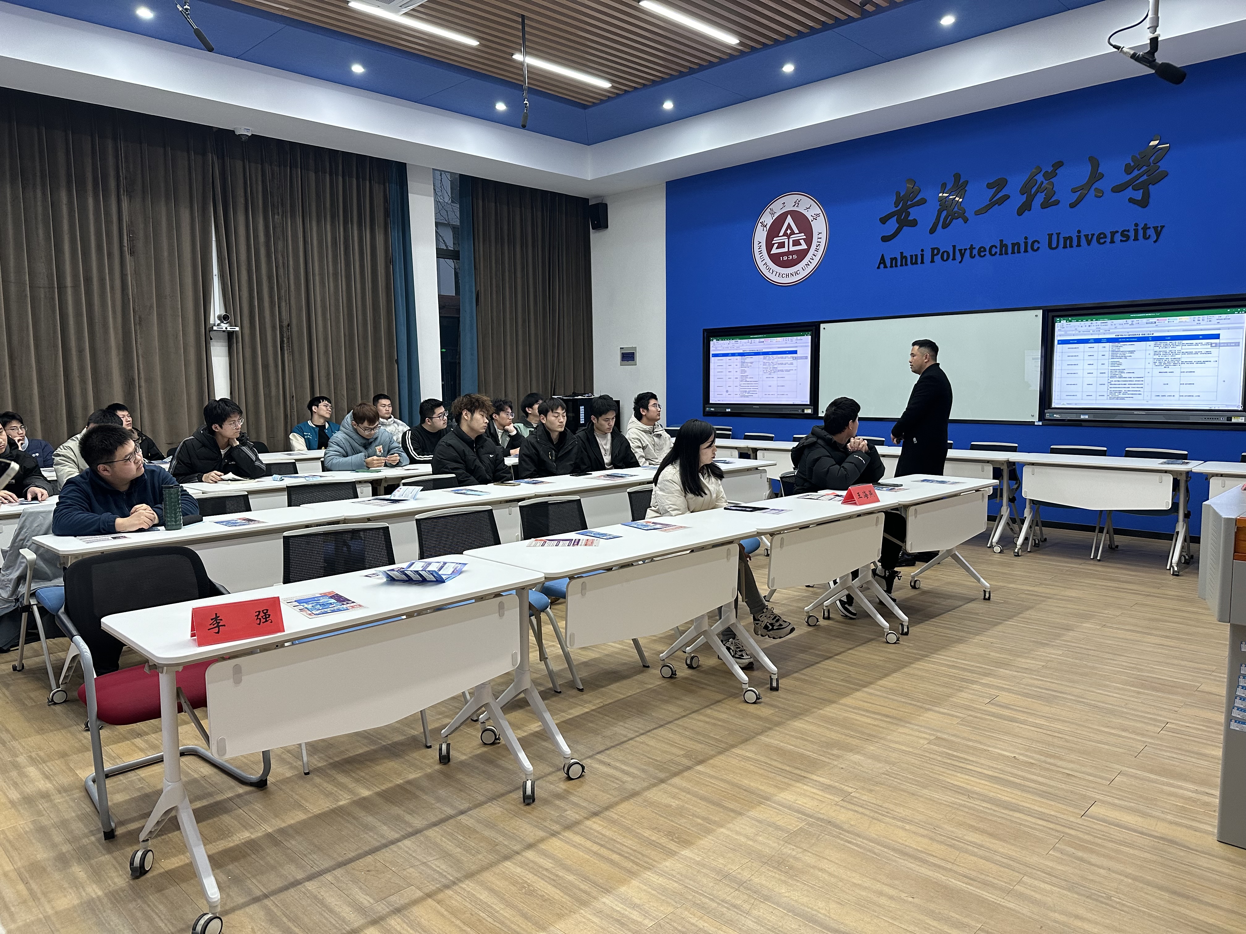 为贯彻落实“大学生促进就业认知行动”举措,推进我校毕业生高质量就业,12月13日,由芜湖经济技术开发区人力资源和社会保障局、校学生处、机械工程学院、“就在芜湖”服务站联合主办的“‘职’引未来 就在芜湖”大学生就业指导专题活动在国际工程师学院校区X101教室成功举办。芜湖经济技术开发区人社局人才中心科长李强、奇瑞汽车股份有限公司人力资源部高级招聘经理李祥受邀出席,机械工程学院团委副书记王海燕及学生代表参加活动。